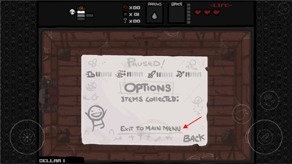 1、在本站下载安装以撒的结合中文版游戏并打开,点击右上角的选项;