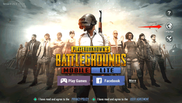 1、在本地下载安装完安卓版绝地求生低配版之后,点击进入游戏,在游戏界面点击右边的language图标。