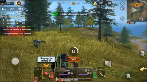 6、当你受伤时,可以通过急救包、绷带和饮料来恢复血量。需要注意的是治疗自己的时候需要时刻注意周围的动向,不然有可能给某些老六阴了。