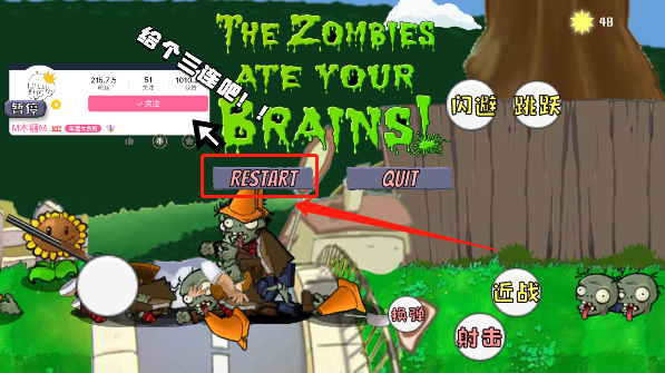 4、即便是被击败后,也无需担心,点击“restart”即可重新闯关,游戏的存档不会有任何损失。