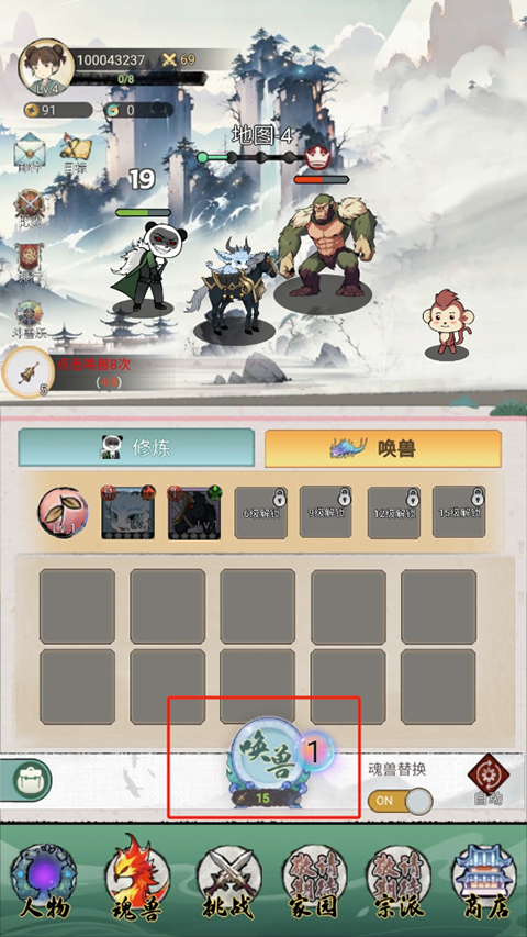 1、在本站下载安装斗兽至高天游戏,打开进入游戏后,玩家可以点击幻兽获得经验值