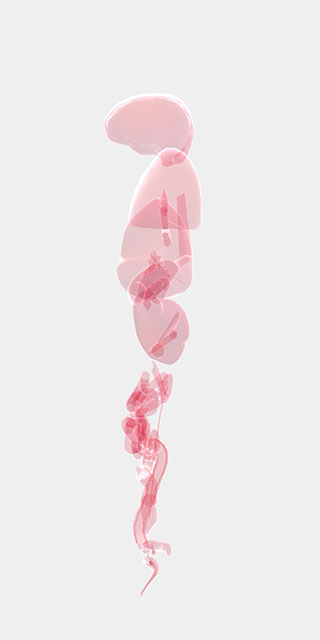 4、我们用手指向屏幕两边进行拖动,会将人体器官分开显示,这样会更有助于我们查找对应器官,点击屏幕中央,器官又会聚拢在一起。