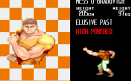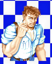 6、穿甲克的小兵,拳头很冷快,最酷的挨揍动画是,他远远的跑过来一个90度伸腿动作,正好踢中处于倒勾腿状态的黄帽的小腹……他发的比较少见的招数是原地起跳侧冲腿。