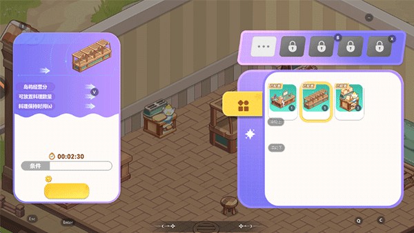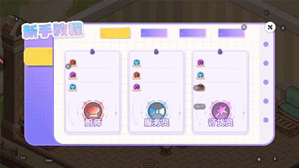 关注屏幕右上角食材库存,及时通过戴草帽的订货员补货。建议优先解锁【自动补货】技能。