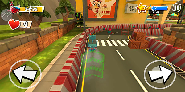 7、在驾驶的过程中会见到堆在赛道上的盒子,我们要尽可能绕过它们,否则会损失生命值,也就是左侧爱心的数量。