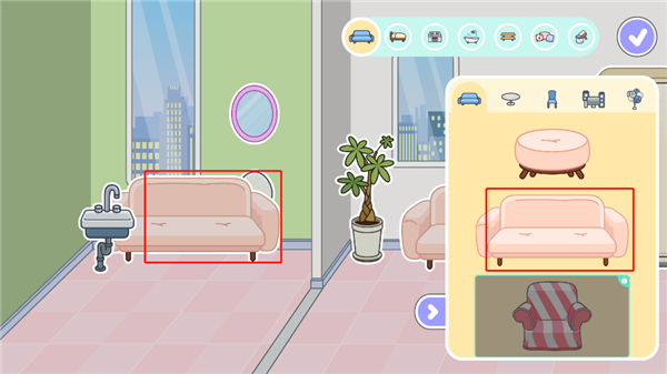 4、提供了非常丰富的家居,如沙发、桌子、洗手台、床、浴缸等等,玩家可以自己选择你想要的家居。