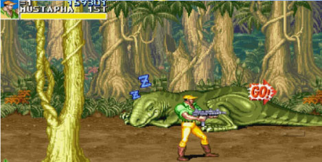 4、睡着的恐龙如果被打醒后会避免打胖子。另外恐龙被打醒后,你可以把它活活的逼下后面的水中,不过成功率不算高。还有就是不打恐龙,来回躲,让恐龙办掉杂碎小兵,哈哈,够虐待了吧