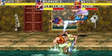 6、关口BOSS变白痴法!!自己独创的。首先想办法让他两双的大刀全部落在屏幕场景的中线上(叠放在一起更好),而BOSS已经被揣出屏幕,马上将身位移到屏幕最靠外的线路上,会发现BOSS丧失一切技能,只会傻子似的从屏幕缓缓的走出来,不会跳,也不会碎步移了,哈哈,你就折跑回去把他再度踢出屏幕,然后他再白痴一样慢慢的又走回屏幕,然后再踢…反复致死!!但是注意一定不要在上下移了,一旦离开这跳横线路,BOSS马上又活蹦乱跳起来。