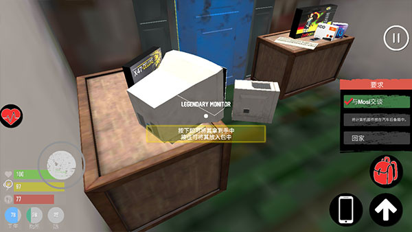 4、完成第二个任务,在门背后获取电脑装备,点击拾取,放入背包。