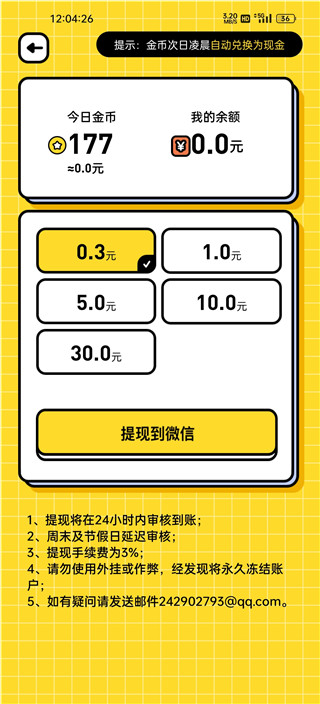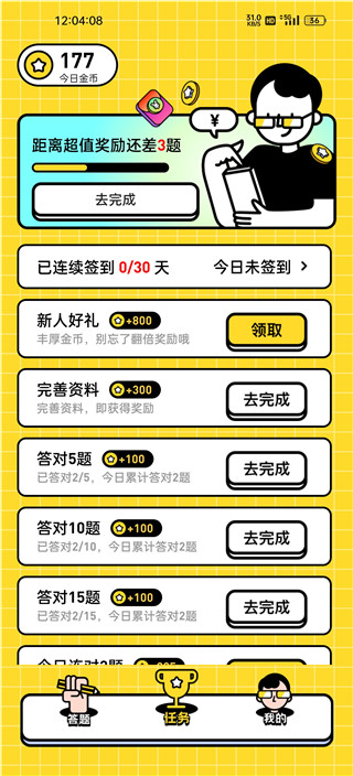 3、每日根据答对题的数量可以获得金币奖励,金币可以兑换成红包