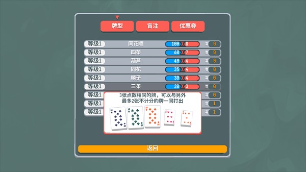 4、开始出牌,不同的牌型可以打出不同的点数和倍率;