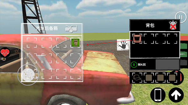 5、然后打开房门,点击后备箱,再次点击“背包”将东西放入。