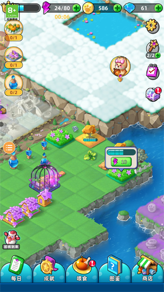 轻量养成与资源循环:动物自动产出基础资源,合并高阶动物可提升资源效率;无需复杂操作,一键收取产出物,资源通过 “合成 - 建造 - 吸引动物”