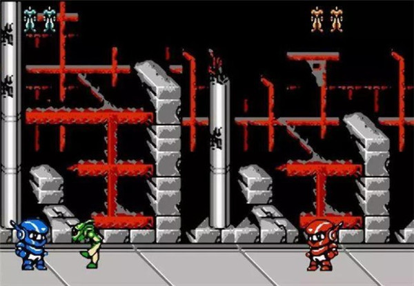 革新性关卡设计:突破街机版5关限制,新增4个原创关卡,涵盖丛林、要塞等多元场景;首创横版与俯视视角无缝切换,部分关卡需向下跳跃探索,颠覆传统横向推进逻辑。
