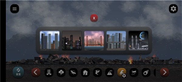 1、打开失控城市模拟器后,在下方可以对城市选择行动,比如放烟花或者放炸弹,再次点击同一个行动就可以更改威力大小或者关闭了。