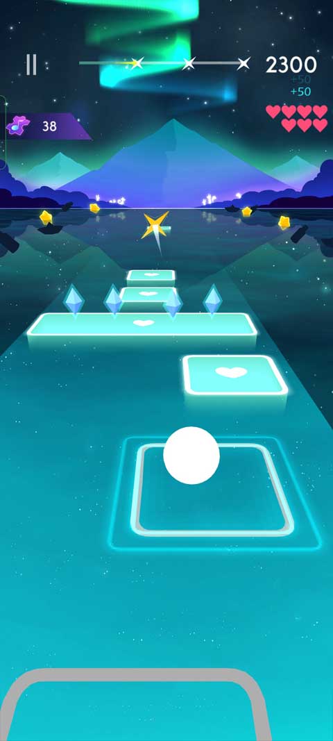 3. 沉浸视听表现:动态场景随旋律强弱变换光影特效,小球跳跃伴随彩色光尾与震感反馈,音画同步的设计让每一次操作都充满爽感。