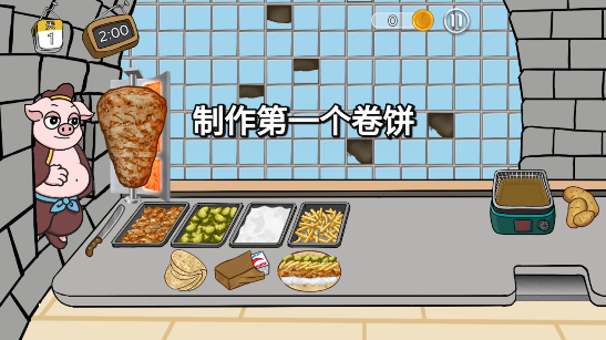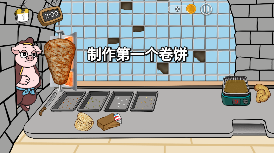 1. 沉浸式制作体验:还原卷饼制作全流程,从馅料预处理到酱料调配均可手动操作,食材搭配自由灵活,能创造专属风味,烹饪音效与操作反馈增强代入感。