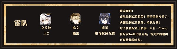 这个队伍配置上稍弱,只有一个ssr,但好在bu比较全面,有更好的输出可以替换掉南星。
