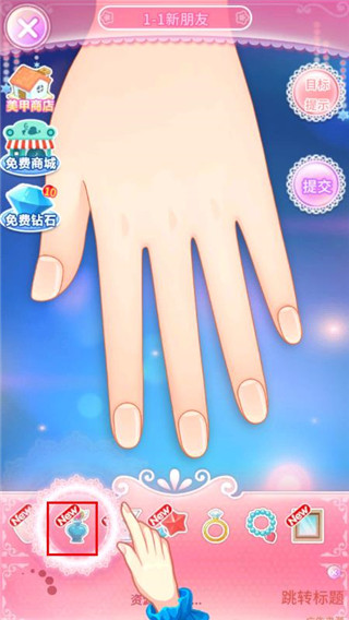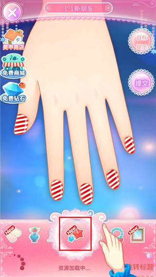 4、开始搭配美甲,通过指甲油、贴纸、钻饰等多个种类进行搭配。