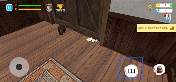 1、在本站下载安装格斗学校模拟器游戏并打开,来到门前点击右下角书本图标阅读门下的便条。