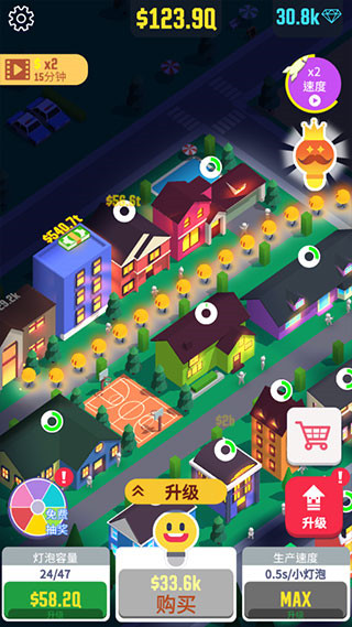 2、通过升级灯泡王国来获得更多的小灯泡,建造各种建筑物来收获新的收益