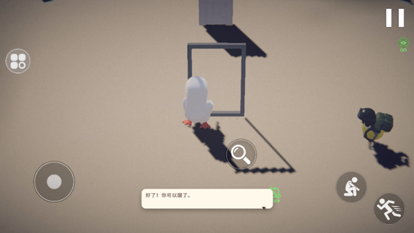 5、正式进入游戏中左边轮盘可以控制方向,右边按钮有蹲下、疾跑等;