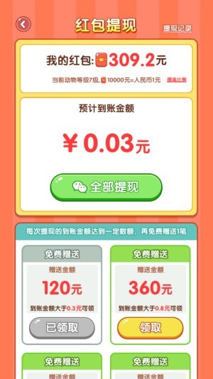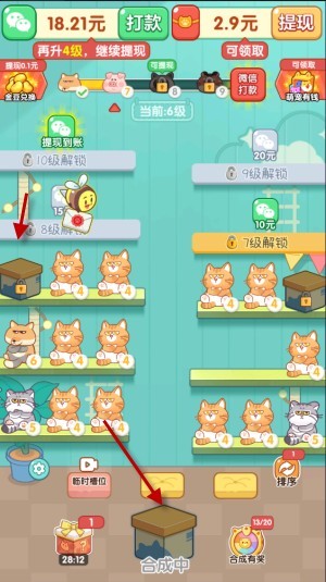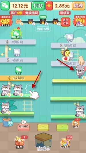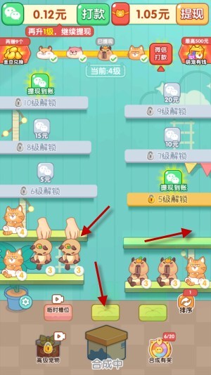 3. 即时收益反馈:合成即有红包奖励,低等级萌宠就能触发小额提现,收益机制清晰直观,增强玩家持续合成的动力。