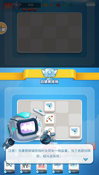 6、注意!当魔物突破防线时会损失一格血量,当三格都扣除后,战斗会失败。