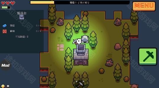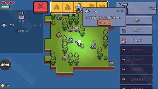 5、然后回到刚开始的页面,开始寻找熔炉的配方——石头;走到石头的旁边,点击右边的锄头按钮;