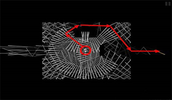 4、打开开关后按照原路返回你会发现之前上方的凹槽变化到下方,同样使用刚才的方法从下方的缝隙道路中通过,在回到起点的位置即可到达终点。