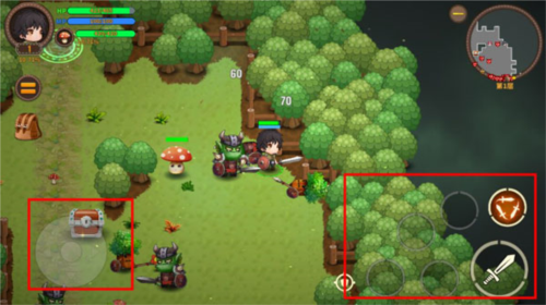 2、左边按钮可操纵英雄行动,右边按钮则可释放技能
