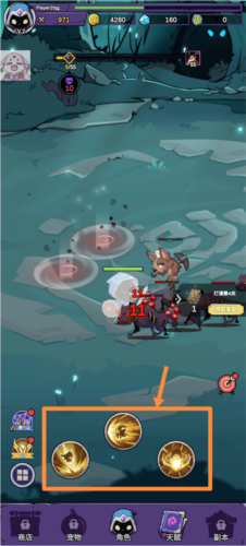 2、在和怪物战斗的时候会自动进行攻击,打不过可以点击释放下方的技能。