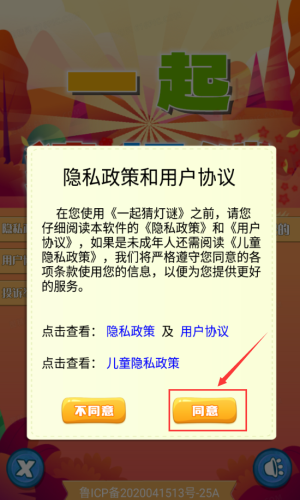 1、点击同意按钮,确认隐私政策开始游戏。