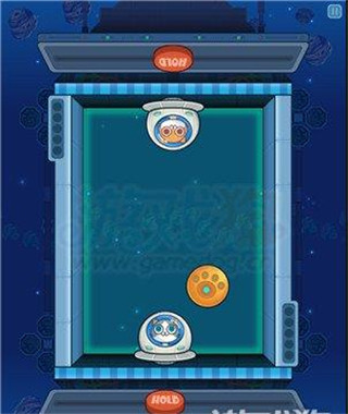 5、而这款中主要是玩家们按住红色的按钮来移动着我们的角色,这样来将黄色的球不断的击中并且弹到对手的那边,球在哪边掉的就算是哪边的失误,而另一方得分