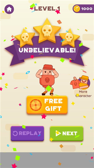 1、操作主角完成指定的任务,简单有趣的物理游戏,难度会不断升级。