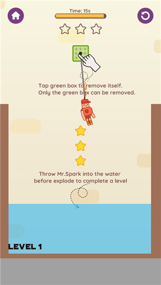 斯帕克先生是一款主打物理模拟与快节奏反应的趣味休闲手游,采用简约明快的卡通画风,围绕“导火线危机”展开核心玩法。玩家需在15秒倒计时内,精准点击绿色方块操控角色掉落,在规避危险的同时收集星星,最终落入水中完成通关。游戏基于真实物理引擎构建,角色运动轨迹、导火线燃烧速度均受环境变量影响,搭配20余种创意道具,既考验瞬间反应,又蕴含策略深度,让玩家在紧张刺激的避险挑战中收获解压乐趣。