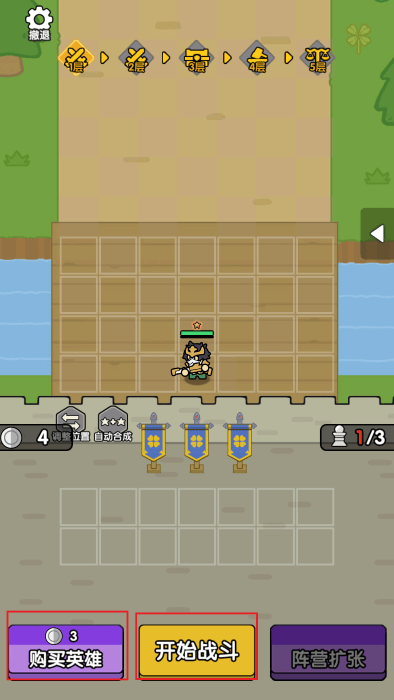 开始你的战斗,招募你的英雄,相同的两个还能合成。