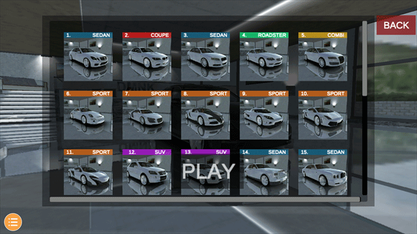 2、点击左上角Car selection 可以选择喜欢的车辆;