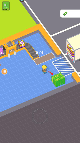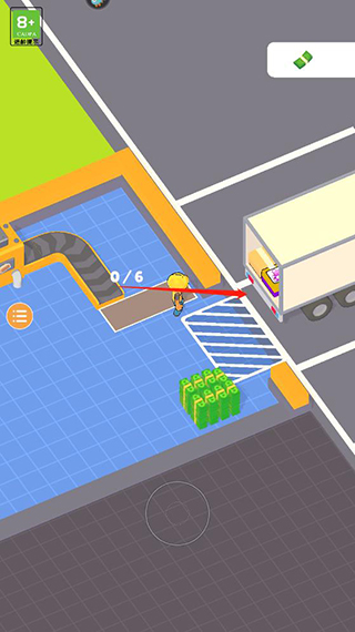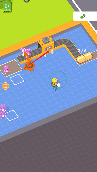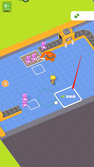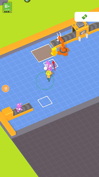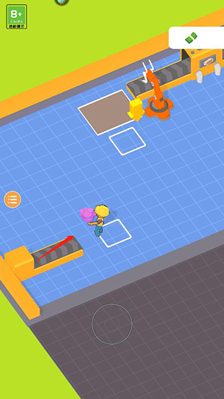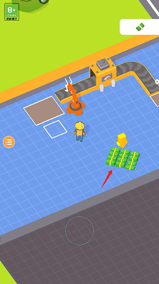 1、进入异星工厂手机版游戏后滑动屏幕控制角色领取钞票;