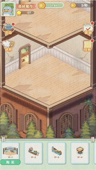 2. 创意经营自由度高:支持360度视角装修,从墙面地板到灯具家具自由搭配,还能解锁空中花园等奇幻场景,经营风格完全由自己掌控。