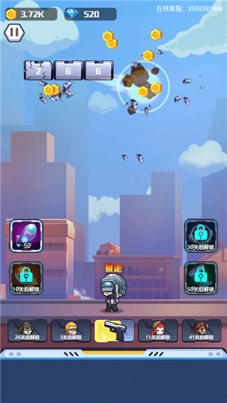 4、在玩家击碎的过程中会有金币掉落,金币可以升级枪械的等级,拥有更强的攻击力。
