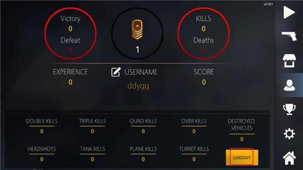 2、接下来玩家需要登录自己的账号才能进入战场,如果没有账号的话,点击头像图标,点击logout。
