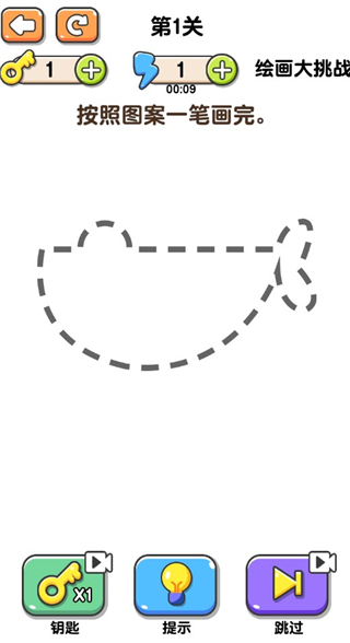 9、绘画模式需要玩家根据图案一笔绘画完成才可以通过成功。