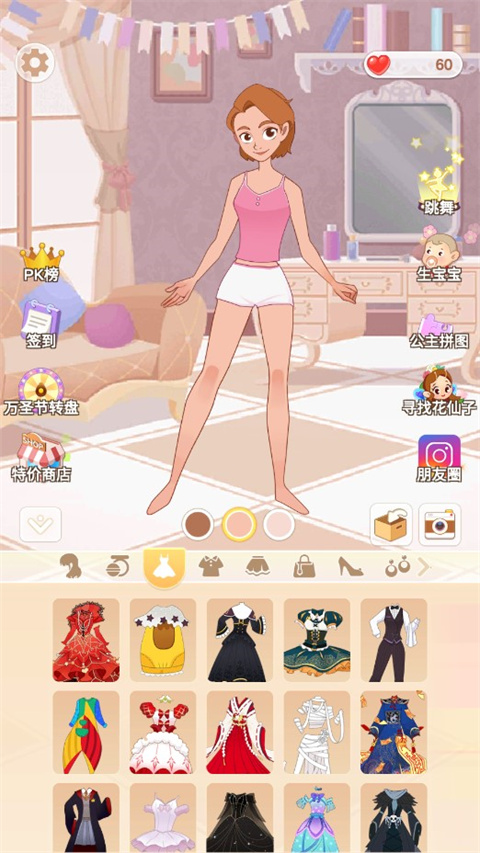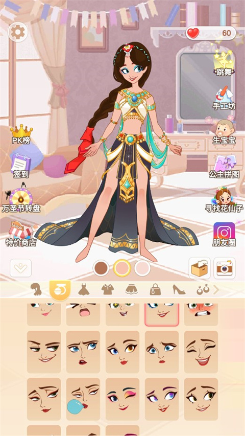 海量造型素材:收录数百套风格各异的华丽服饰,从典雅宫廷礼服到甜美派对裙装,搭配钻石头饰、蕾丝披肩等精致配饰,妆容细节可精准定制,满足多元审美需求,解锁创意搭配可能。