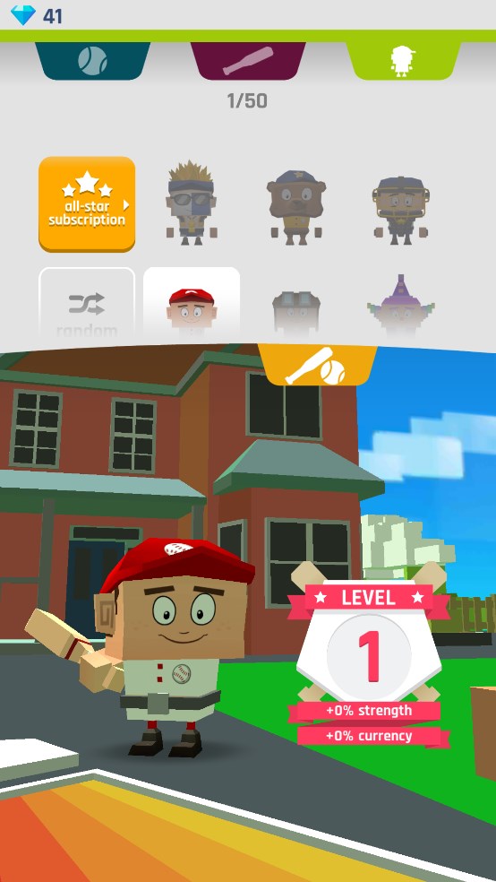 4、爱好收集的玩家,可以在顶部的“棒与球”图标中解锁全新的棒球皮肤,还有数十种不同人物皮肤可以选择。