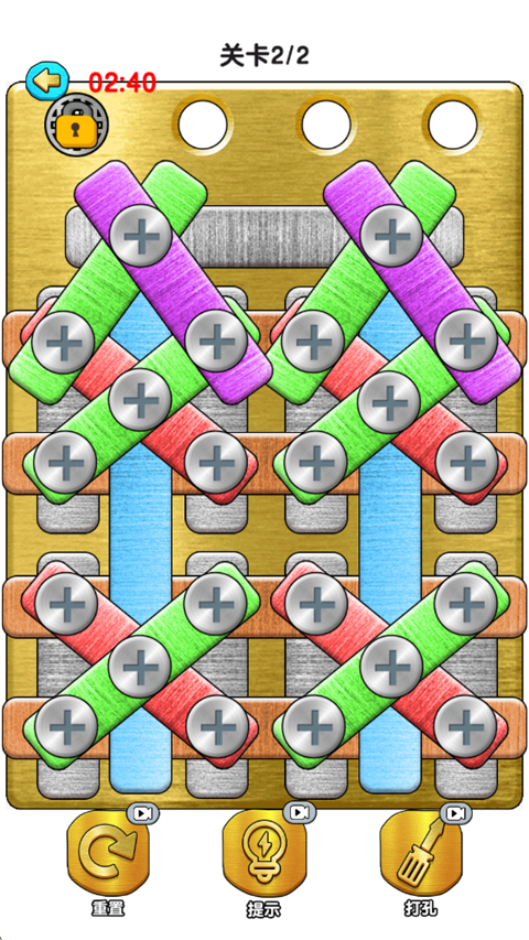 2、进入玩法第一关非常简单,关卡2才是困难的,下方还有提示、重置功能;