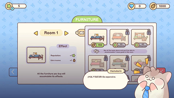9、游戏还有丰富的场景和道具等待玩家探索体验,以上就是仓鼠旅馆最新版的玩法了。