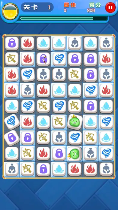 3、在萌趣连消消游戏里,可以将五个连在一起的方块消除掉,可以形成新的消除技能,解锁全新的成就。