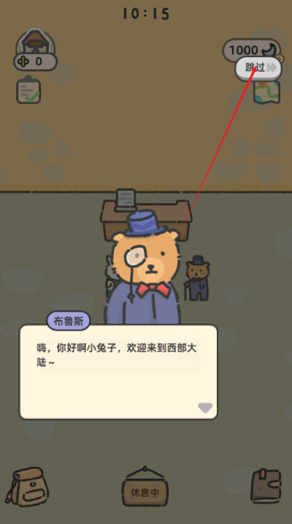 1、下载安装可爱兔兔咖啡厅,进入游戏,点击跳过对话
