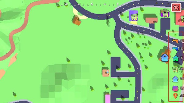 点击右上角的地图,可以查看地图上的建筑,比如武器、加、商店、餐饮等,自由的在这个城市探索吧!
